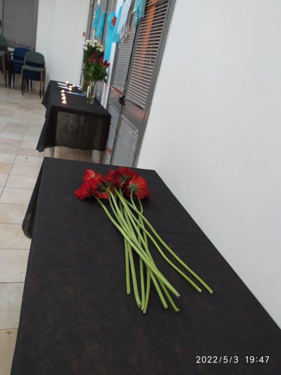 הערב הופק על ידי הנוער במושב והתקיים במגרש במגרש הספורט. במועדון התקיימה תצוגה של תמונות הנופלים וסיפור חייהם. מצורף התמונות שהוצגו.אחרי הטקס התקיימה שירה בציבור בהנחיית שרה ספיר.